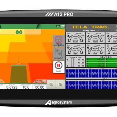 Uma solução completa para Distribuição de Fertilizantes. Inclui a Tela A12 PRO com design inovador, conta com Guia Virtual (Barra de Luz), display amplo de 12” e permite integração de câmeras. Além de Módulos ISOBUS, que garantem máxima eficiência na aplicação de fertilizantes em taxa fixa e variável, com opção de controle de comportas.